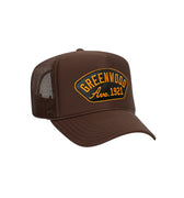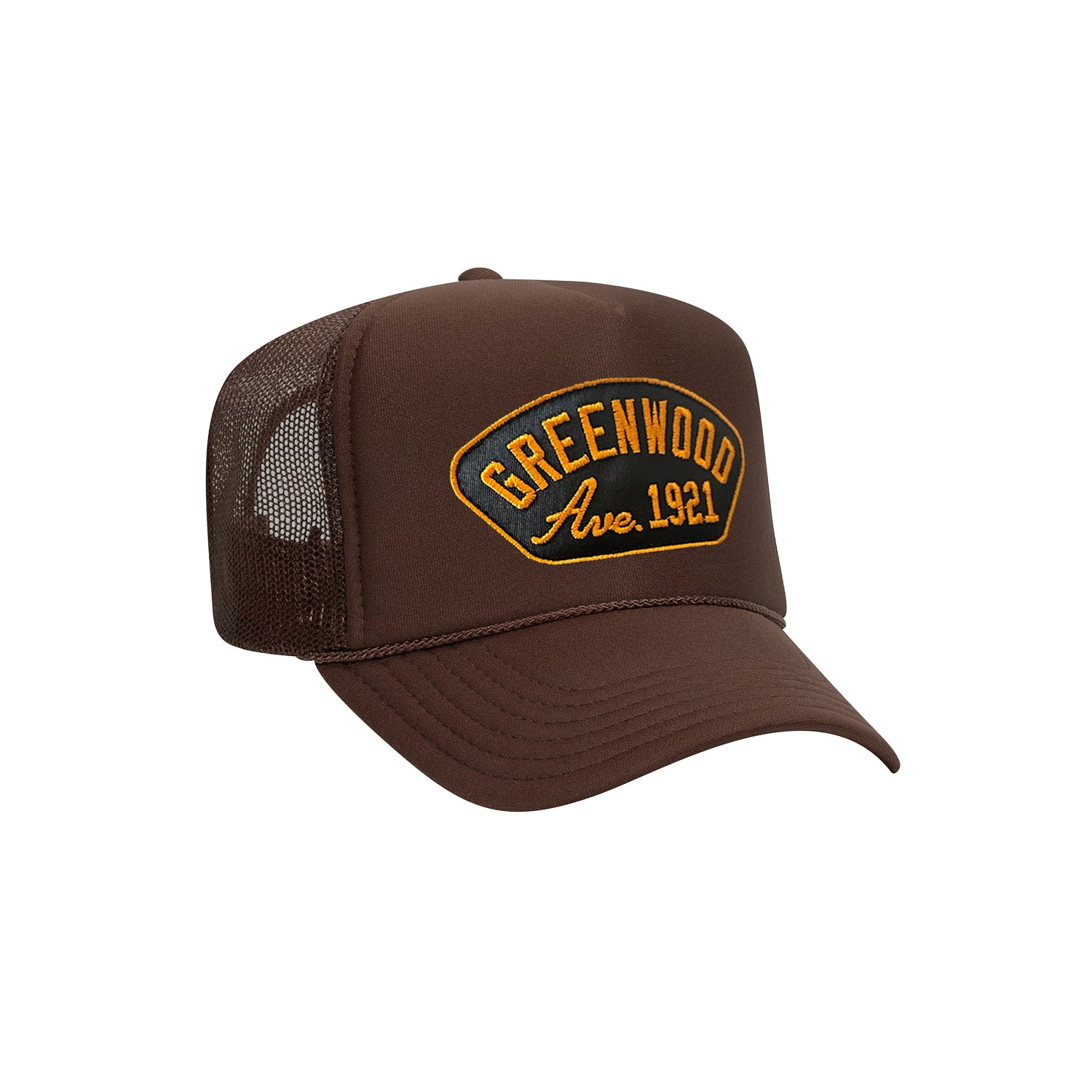 A bold take on a classic. This high-crown trucker cap features the Greenwood Ave. Arc II patch, embroidered in gold on a structured five-panel design.