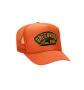 A bold take on a classic. This high-crown trucker cap features the Greenwood Ave. Arc II patch, embroidered in gold on a structured five-panel design.