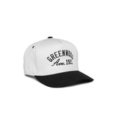 Greenwood Ave. is everywhere. Add a staple to your wardrobe with our two-tone retro baseball caps featuring the Greenwood Ave. Arc II design, embroidered in khaki.